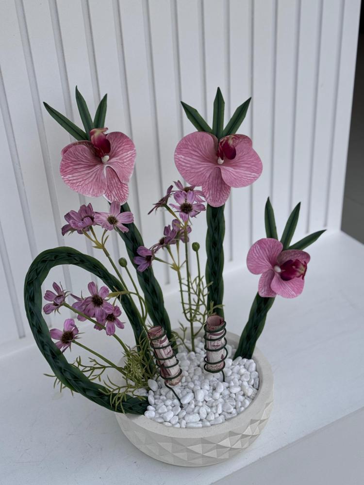 Acrylic stand with artificial flowers